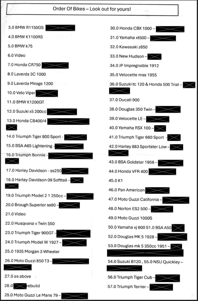 57 bikes covering 20 different marques were either cherished or hated. The vast majority were cherished memories; most involved friends and/or partners.