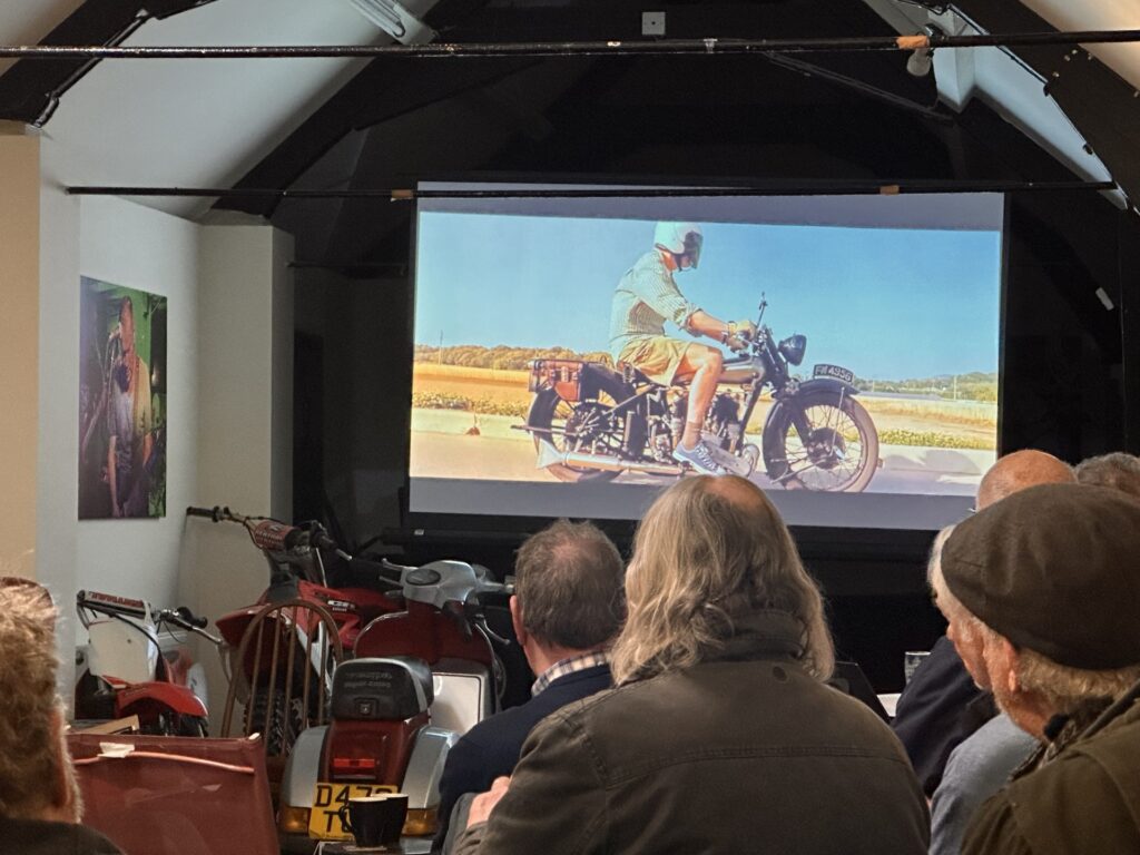 Rod selling a Brough Superior. His description of the quietness of the machine from the rider’s perspective, of being able to hear motorcycles fore and aft changing gear, and the underlying sadness of selling the machine. A few damp eyes around the function room.