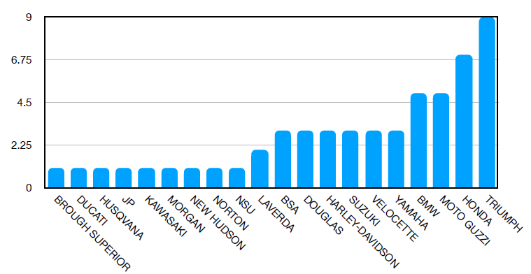 As can be seen Triumph were the most popular marque. An interesting mix of European and Far East machines were discussed.