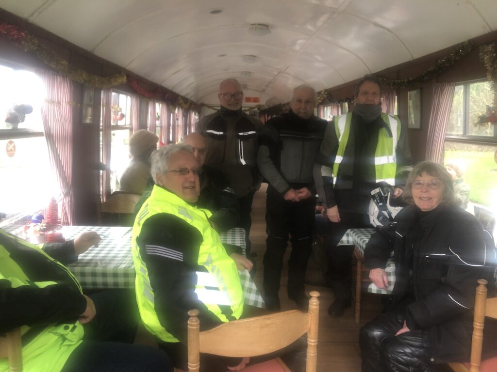 On a cold, post Christmas, Sunday morning a few stalwart (foolish?) members met for an impromptu ride ( NOT AN OFFICIAL VMCC RIDEOUT) in Dorchester. After a brief discussion it was decided we should ride to Shillingstone Station; it proved to be an inspired choice for the inaugural ride of the Blue Drippy (thank you Colin for the additional adjective) Nose section of the South Dorset VMCC.